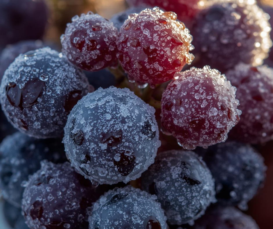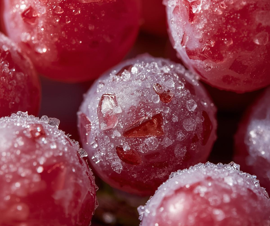 Cuando las uvas se congelan, el agua en su interior forma pequeños cristales de hielo.